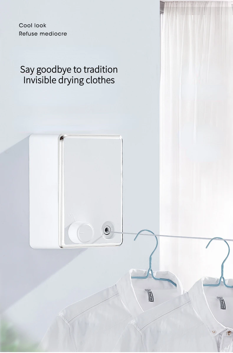 11694-ស្នួលហាលខោអាវ 4.2M Telescopic Clothesline Balcony Bathroom Wall Hanging Quilt Line Home Drying Rack for Clothes Dryer Organiser Laundry Hanger