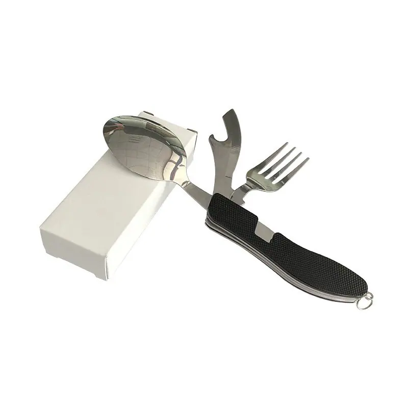 4143-ស្លាបព្រាសមកាំបិតConcave and convex camping folding knife and fork spoon outdoor camping multifunctional stainless steel tableware cross-border wholesale AT6386