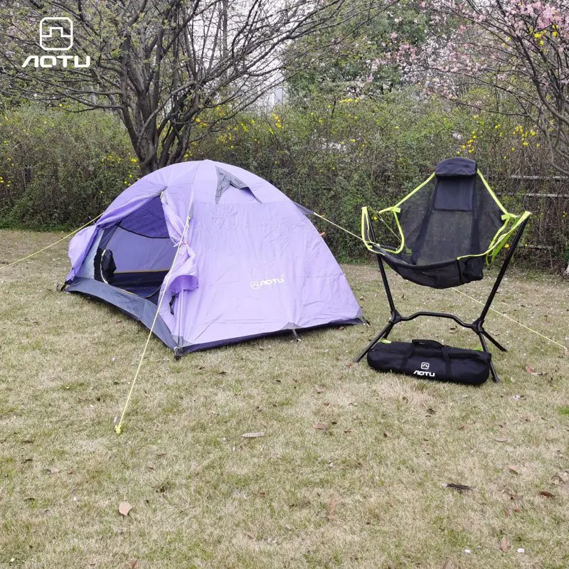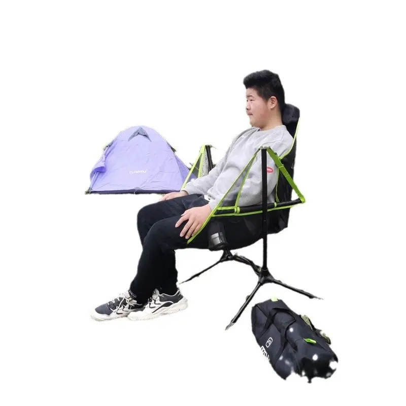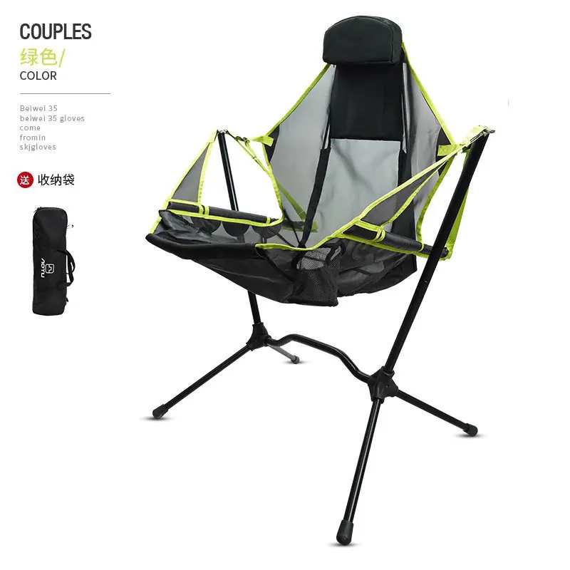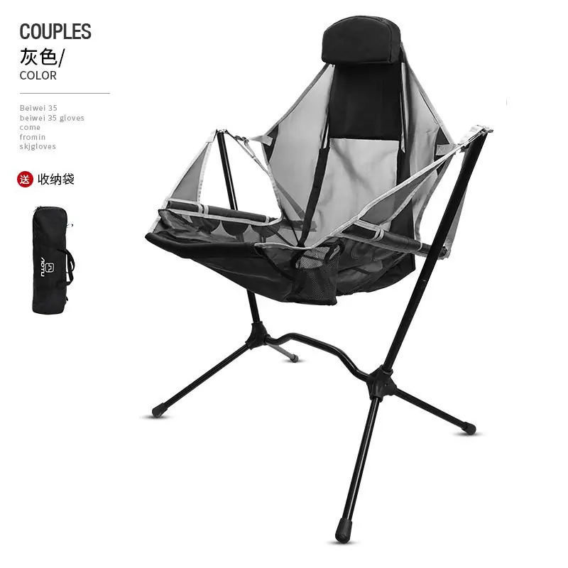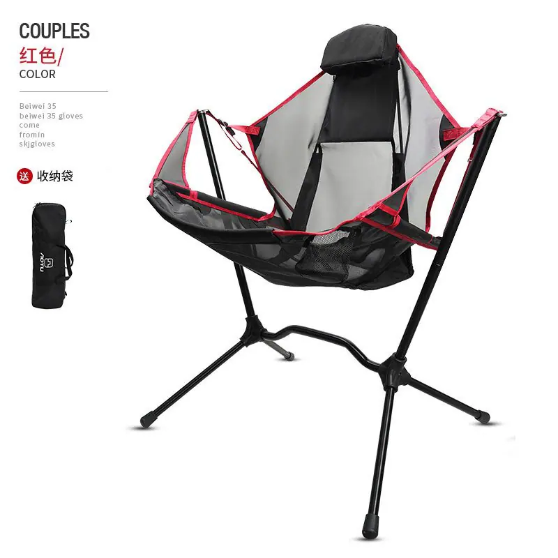 4150-កៅអីយោល aluminum alloy rocking chair recliner folding fishing chair enlarged with pillow cradle moon chair