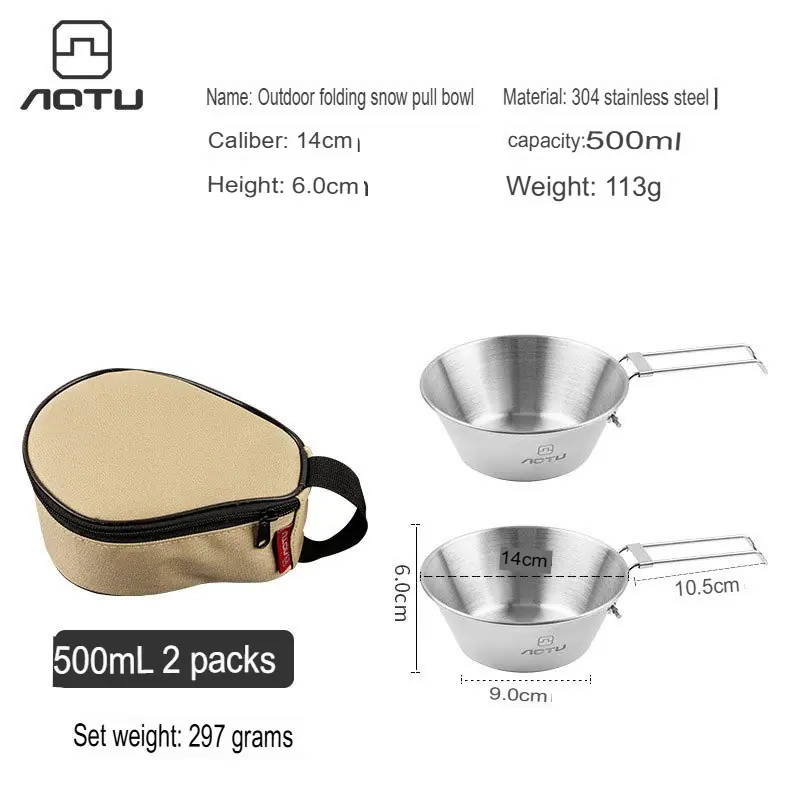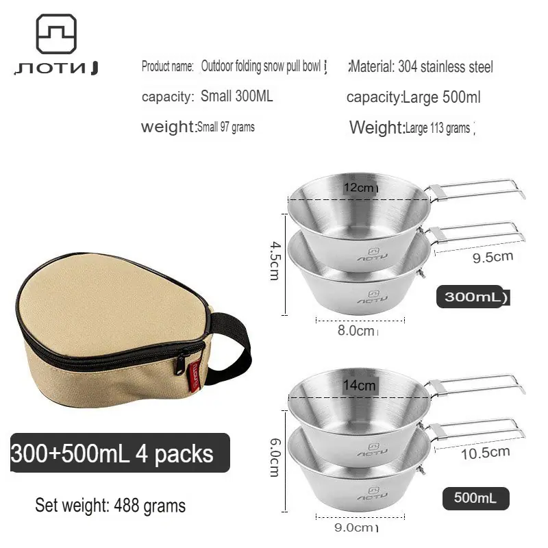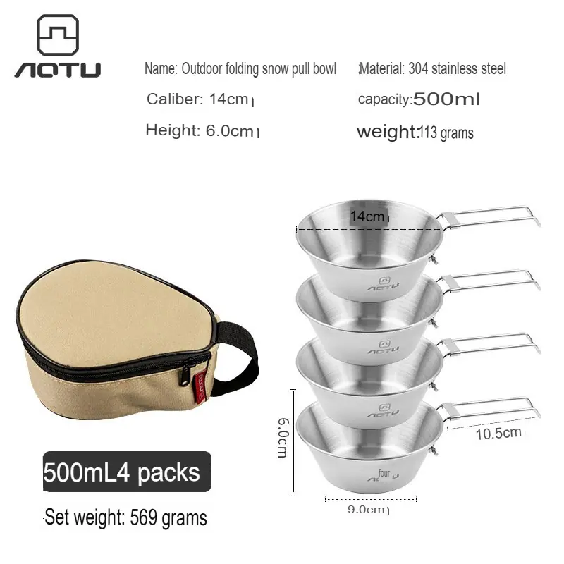 4167-ចានអាលុយមីញ៉ូម 300ML outdoor stainless steel snow bowl camping tableware set portable foldable picnic barbecue bowl 4 pack