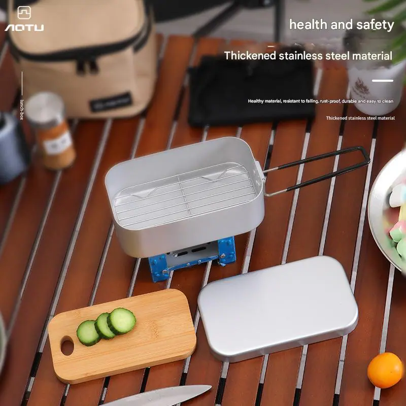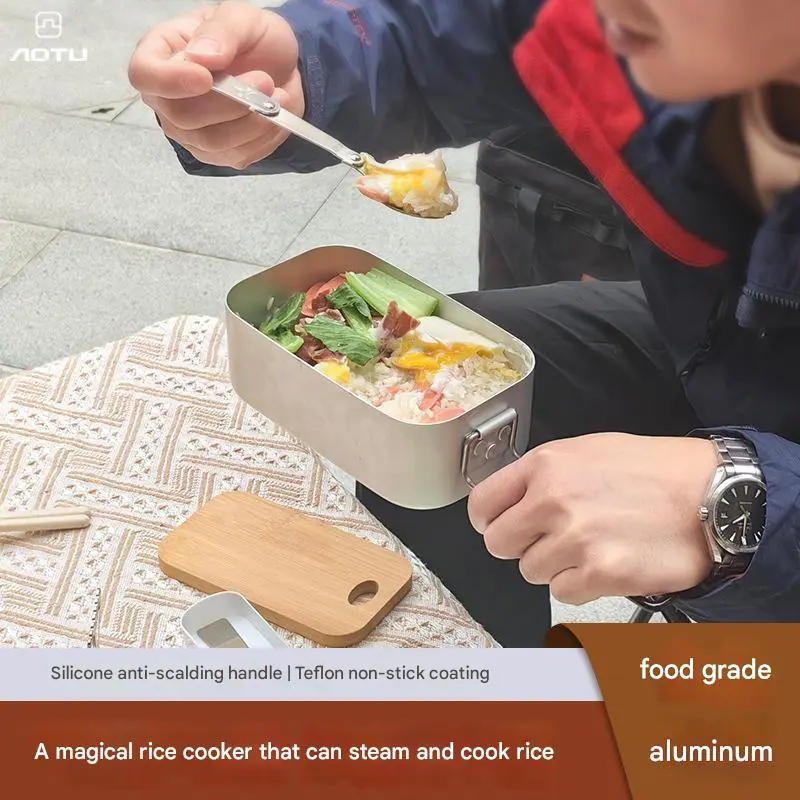 4173-ឈុត Lunch box aluminum camping tableware portable heating old-fashioned aluminum alloy pot picnic cooking artifact