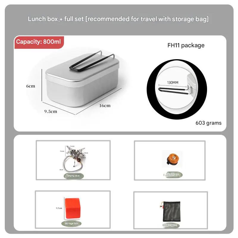 SKU5: lunch box * 1 + German alcohol stove * 1 + mesh bag * 1 + paper box * 1 Weight: 353g