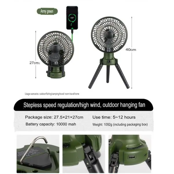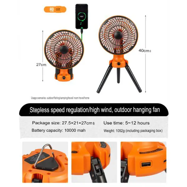 4180-កង្ហា X79 Upgraded outdoor electric fan portable ceiling fan camping LED tent light camping tripod desk fan