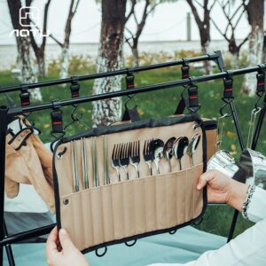 Price range: $5.00 through $6.004176-ឈុតស្លាបព្រា សម (ចង្កឹះ) Outdoor 304 stainless steel camping cutlery set storage bag chopsticks spoon fork knife picnic cookware