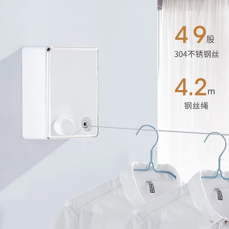11694-ស្នួលហាលខោអាវ 4.2M Telescopic Clothesline Balcony Bathroom Wall Hanging Quilt Line Home Drying Rack for Clothes Dryer Organiser Laundry Hanger