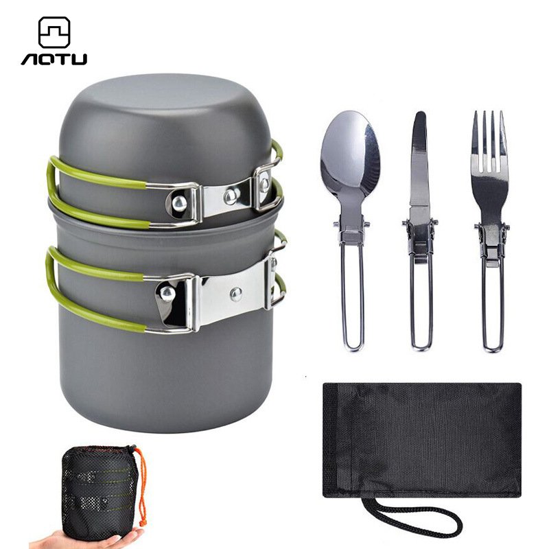 4155-ឈុតឆ្នាំង 1-2នាក់ DS101 camping pot set combination portable 1-2 person picnic stove cooker set
